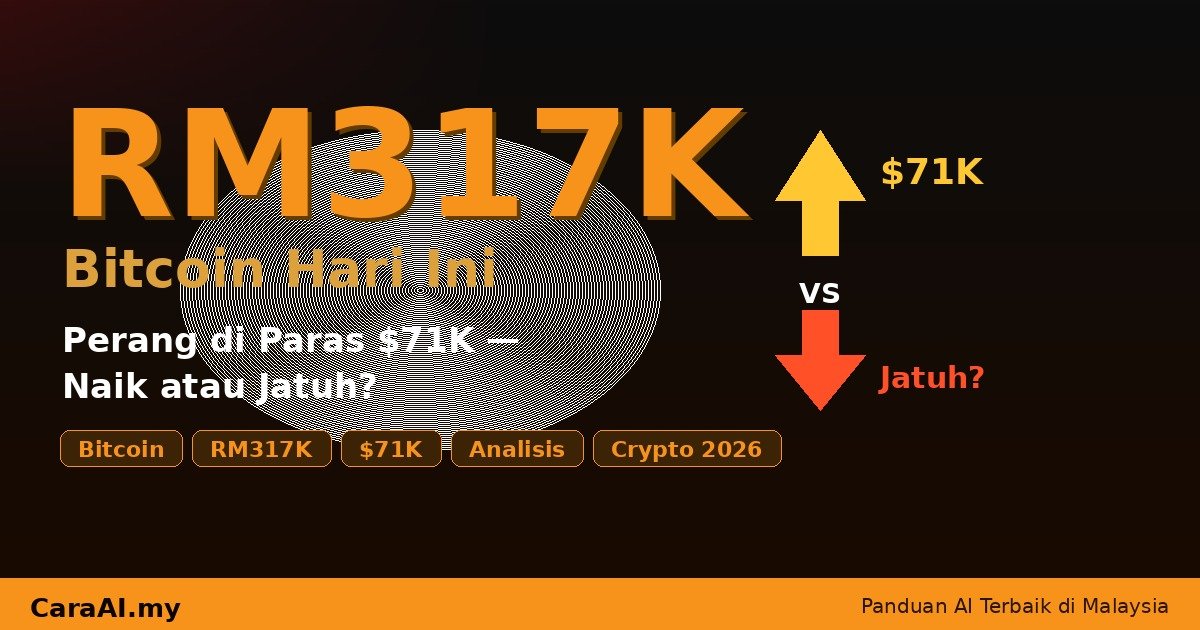 Pada masa artikel ini ditulis (Mac 2026), Bitcoin berada di sekitar $71,000 USD — bersamaan dengan kira-kira RM317,000 berdasarkan kadar pertukaran semasa (USD/MYR ~4.46).